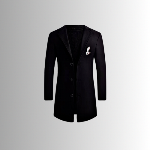 SHHH Executive Collection Men’s long slim fit Trench Coat. This coat is made of wool and soft cotton giving a warm and comfortable feel and fit. Fits true to size.